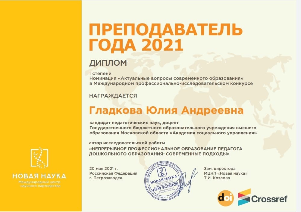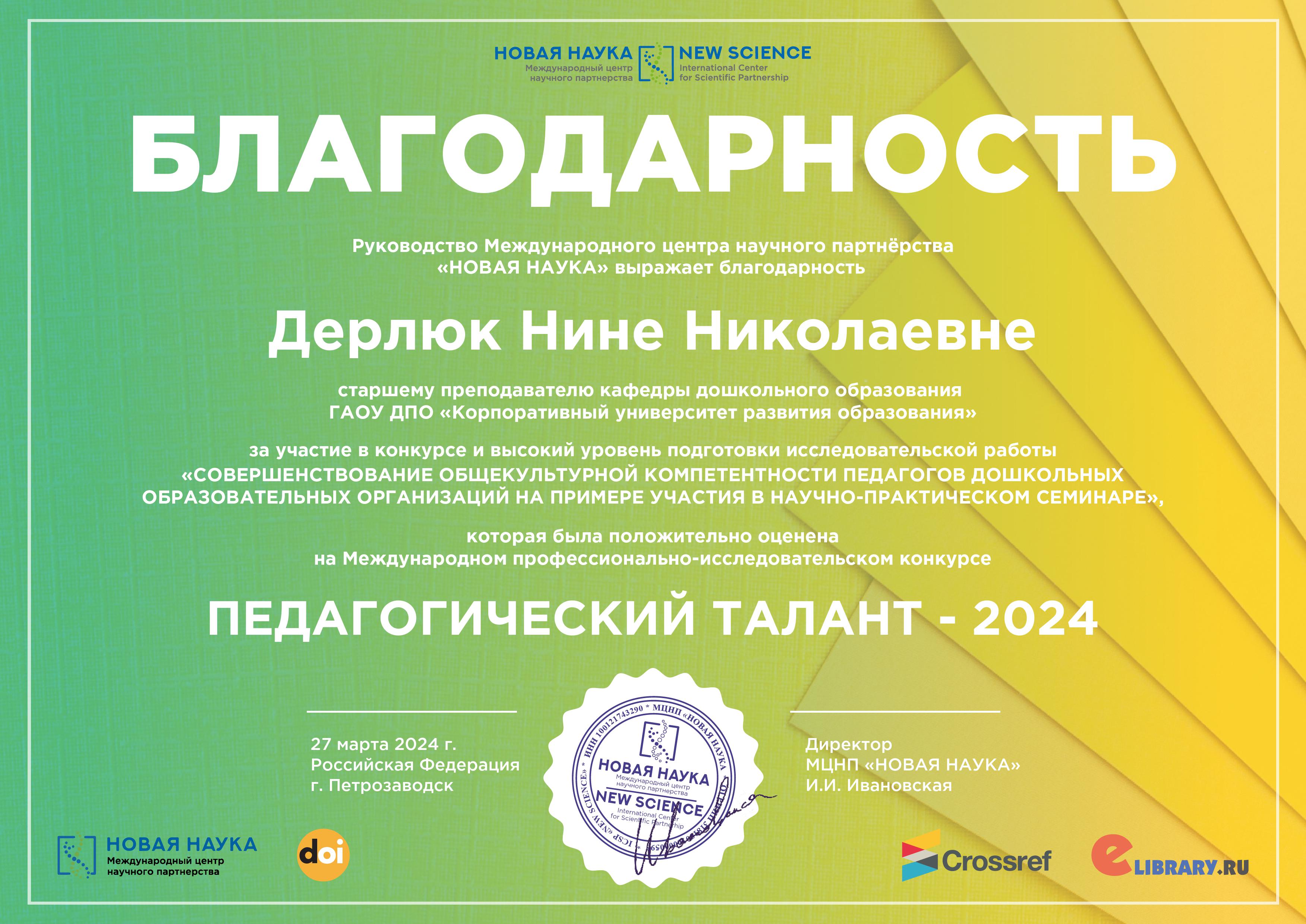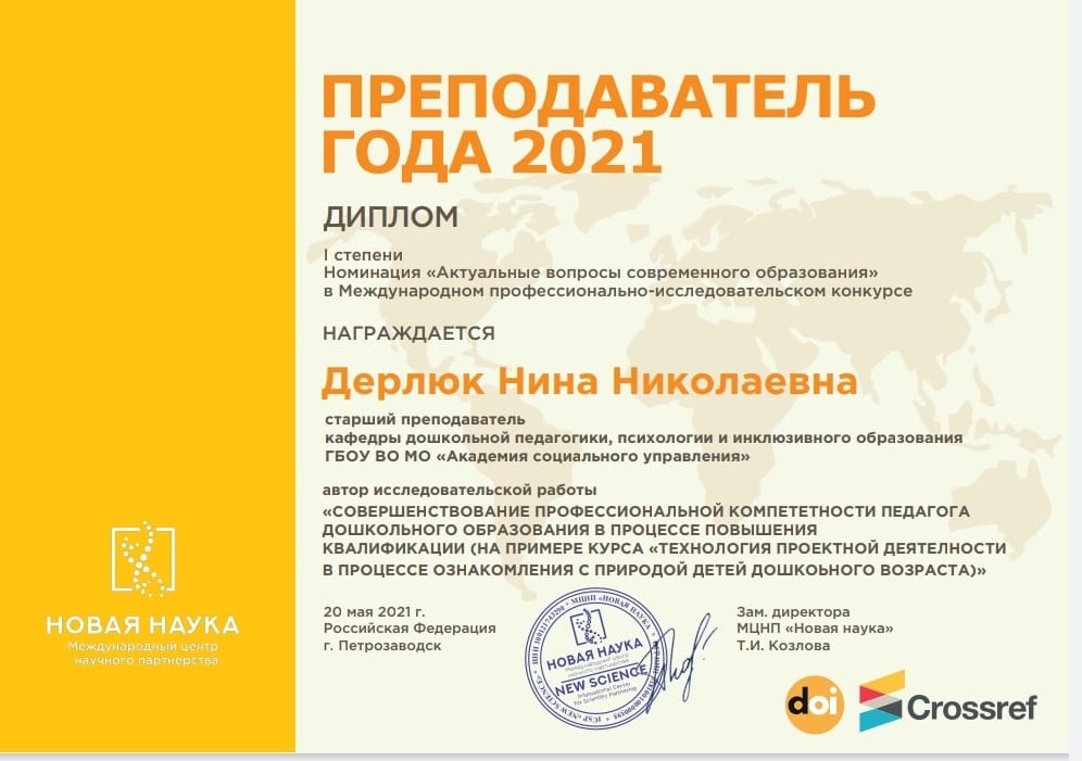 - Член Ассоциации педагогов дошкольных образовательных организаций и педагогов России