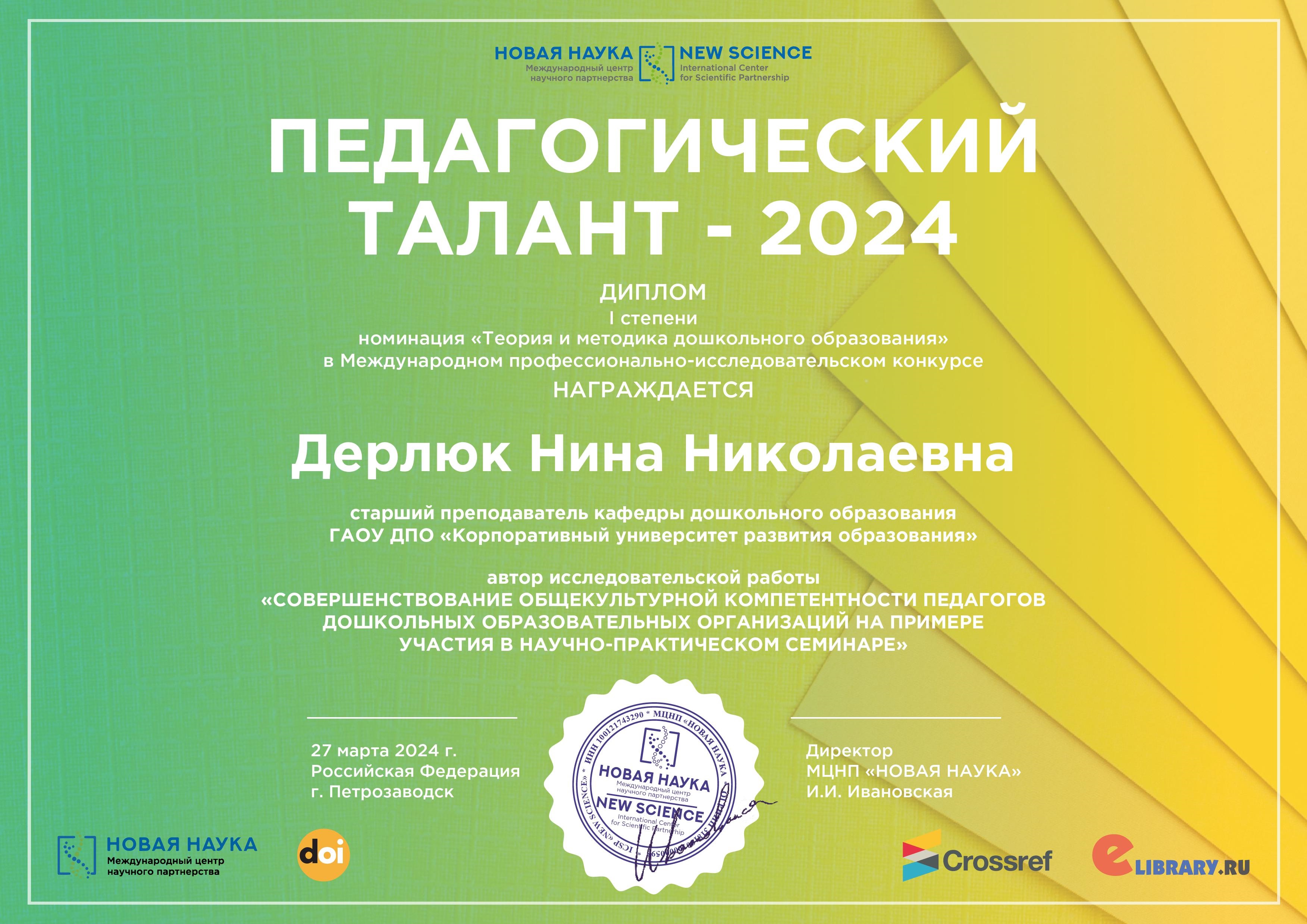 - Член Ассоциации лучших дошкольных образовательных организаций и педагогов России