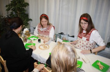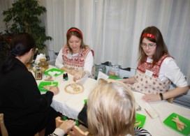В зоне педагогических практикумов были представлены мастер-классы и стендовые доклады: роспись по дереву «Из глубины веков» (учителя-логопеды ДО № 38 Пономаренко Елена, Лагутина Светлана); изготовление браслета из бересты «Плетение силы, дыхание леса» (воспитатели ДО № 38 Новожилова Елена, Чепухина Александра); стендовый доклад «Путешествие по регионам России» (воспитатели ДО № 26 Компан Татьяна, Пятницкая Яна); лепка из теста «Русский самовар» (воспитатель ДО № 38 Пантикова Екатерина). Музыкальный руководитель ДО № 38 Лепихова Ирина показала с детьми приветственную инсценировку «Ярмарка».