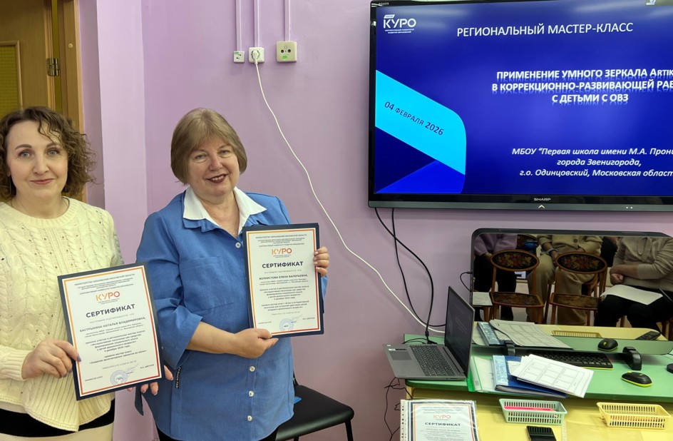 04 февраля 2026 года кафедра дошкольного образования КУРО провела региональный мастер-класс «Применение умного зеркала ArtikMe в коррекционно-развивающей работе с детьми с ОВЗ». Место проведения: МБОУ «Первая школа имени М.А. Пронина» города Звенигорода, г.о. Одинцовский, Московская область.