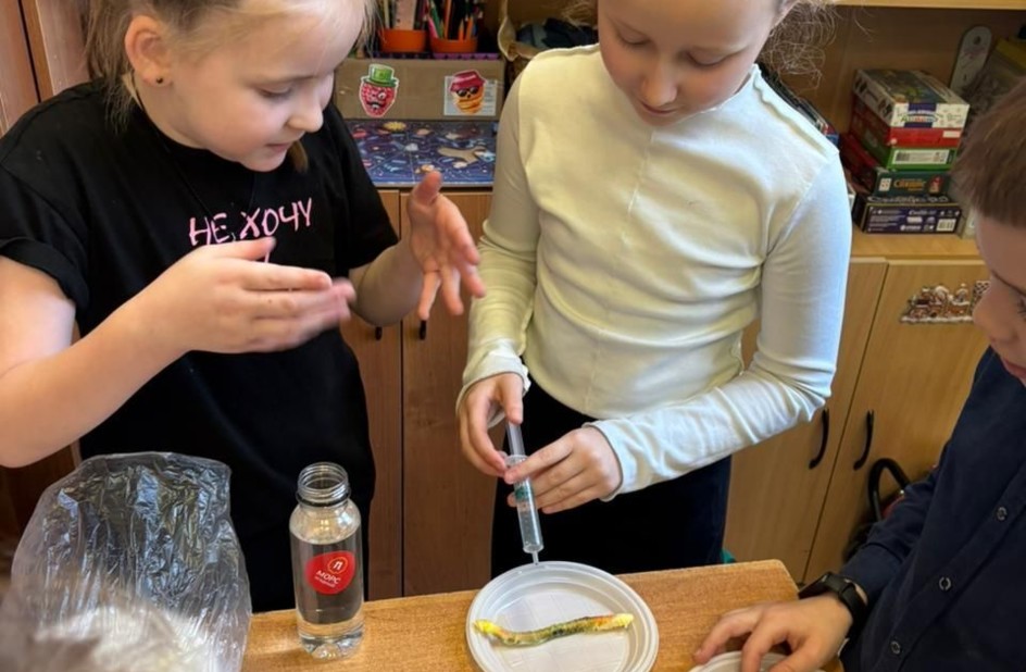 Обучающиеся 3 «Эф» класса МОУ СОШ №1 г. Можайск провели опыты «Червячки из бумаги и воды». Они узнали, как бумага впитывает воду, набухая и имитируя движения червяков. В эксперименте «Лавовая лампа» ребята выяснили, что вода плотнее масла и опускается на дно емкости. В 4 «Эф» классе прошли опыты «Как работает осязание» и «Какой глаз у тебя главный». В первом эксперименте они проверили, насколько точно мозг может «видеть» руками, и выяснили, что кожа передает мозгу сигналы о форме, размере и положении объектов. Во втором эксперименте ребята узнали, что ведущий и ведомый глаза работают вместе, где ведущий отвечает за точную «наводку», а ведомый помогает видеть шире и дополняет картинку.