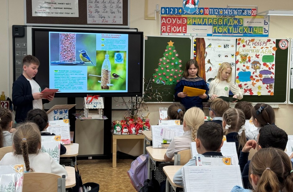 Ученики 5 класса МОУ Ново-Харитоновская СОШ №10 с УИОП м.о. Раменский изучали зимнюю природу и её обитателей. Они посетили уроки в 3 «Э» и 4 «Э» классах, рассказав младшеклассникам о зимующих птицах. Подготовили презентацию, провели игру «Узнай птицу» и создали поделки в виде снегирей и синиц. Яркие птицы украсили классы. В пятницу, по заданию адвент-календаря, дети подкормили птиц в школьном саду. Неделя стала праздником познания и добра, обогатив учеников знаниями и навыками.