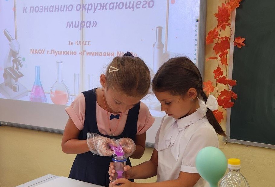 ЛУЧШЕ один раз УВИДЕТЬ и СДЕЛАТЬ САМОМУ — чем сто раз услышать или прочитать в учебнике! Под таким девизом прошла тематическая неделя в 1э классе МАОУ г. Пушкино «Гимназия №10». Ребята экспериментировали и проводили опыты с водой, с песком, с уксусом и содой, что позволило углубить знания в области физических свойств воды и других веществ, помогло развить мышление, терпение, настойчивость, умение делать выводы. Особый интерес вызвал эксперимент «Почему шарик надулся» - при соединении уксуса и пищевой соды произошла химическая реакция - выделился углекислый газ, под давлением которого надулся шарик.