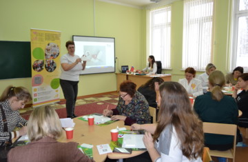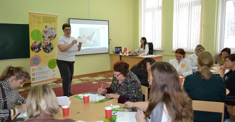 Среди представителей партнеров на семинаре присутствовали папы воспитанников, завуч и учащиеся начальных классов МБОУ СОШ №16, волонтер Благотворительного фонда «Большое сердце» и эколог-просветитель компании ООО «Хартия». Формы, используемые на семинаре, были разнообразны: видеопрезентации, смотр строевой песни, мастер-классы, практикумы. Содержание каждого события в рамках семинара четко соответствовало теме и раскрывало одну из граней партнерства на уровне дошкольного образования и конкретные результаты этой работы: