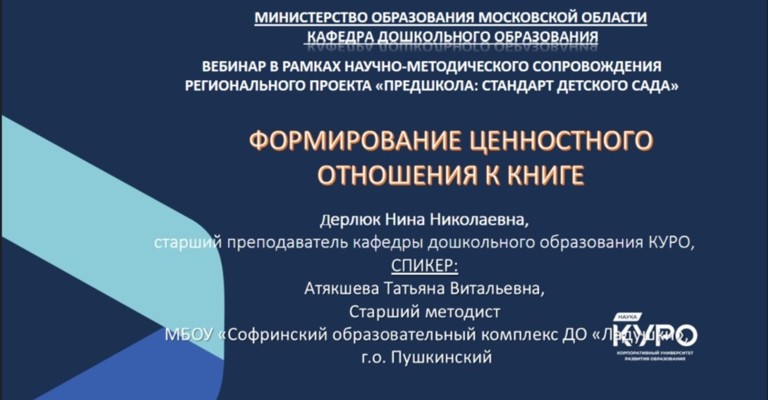 18 сентября 2025 года в рамках научно-методического сопровождения проекта Министерства образования Московской области «Предшкола: стандарт детского сада» состоялся вебинар «Формирование ценностного отношения к книге»