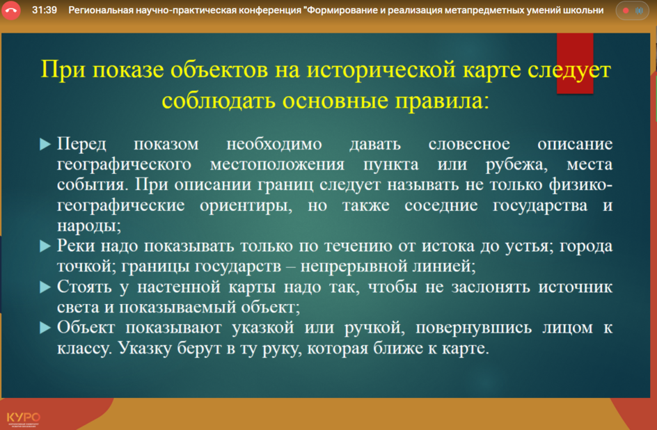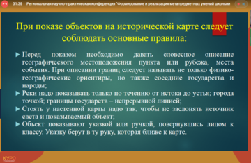 Участники вебинара рассмотрели вопросы, связанные с методиками формирования метапредметных результатов обучения по истории и обществознанию, а также продуктивные формы и приемы педагогических практик учителей истории и обществознания Подмосковья.