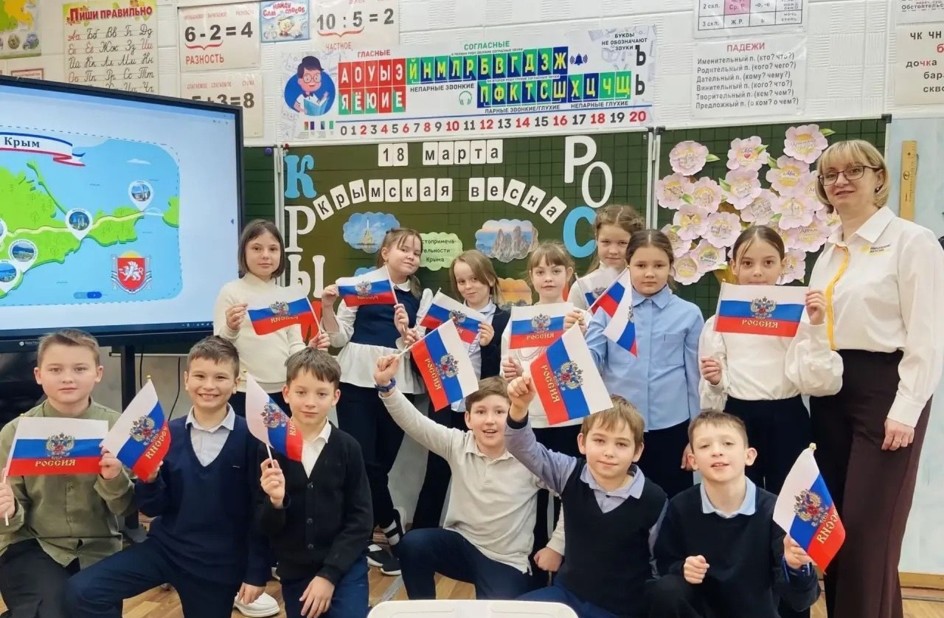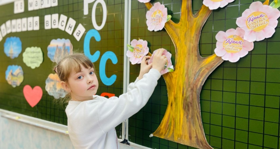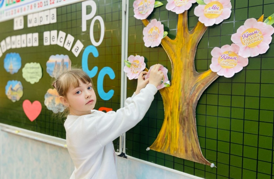 18 марта в 4 «А» классе МОУ Ликино-Дулёвская СОШ № 5 Орехово-Зуевского г.о. прошло по-настоящему теплое и значимое событие — День воссоединения Крыма с Россией. Вместе с советником директора по воспитанию ребята совершили виртуальное путешествие в историю Крыма: узнали о его удивительной природе и о том, почему этот день так важен для каждого из нас. Главным символом встречи стало «цветущее дерево», созданное руками учеников. Каждый ребёнок вложил частичку души в свой неповторимый цветок. Объединившись, ребята превратили обычное дерево в яркий символ Крымской весны и обновления. Эта дружная работа — лучшее доказательство того, что в единстве наша сила, а мы — одна большая и крепкая страна!