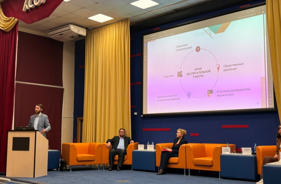- Макеев Юрий Олегович, директор ГБОУ ДО МО «Областной центр развития дополнительного образования и патриотического воспитания детей и молодёжи», осветил тему «Ключевые задачи воспитания и дополнительного образования в 2024-2025 учебном году». Во время выступления Юрий Олегович подтвердил решимость занять федеральную арену и, со своей стороны, обещал серьезное внимание к активности школ в цифровом пространстве, в том числе в вопросах увеличения объема скачиваемых материалов, рекомендованных для использования в проведении «Разговоров о важном».