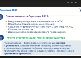 В рамках обсуждения подходов к формированию устойчивых навыков финансово грамотного поведения у разных возрастных групп выступили эксперты и педагоги. Екатерина Лебедева, эксперт дирекции финансовой грамотности НИФИ Минфина России, представила обзор игровых практик по финансовой грамотности — их роль и потенциал в развитии финансовой культуры.
