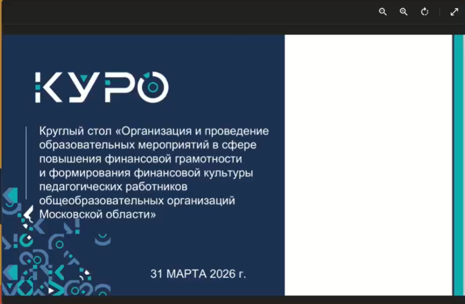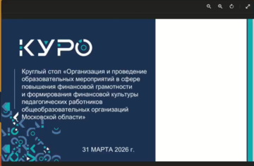 31 марта Отдел финансовой грамотности Центра стратегического развития КУРО провел круглый стол «Организация и проведение образовательных мероприятий в сфере повышения финансовой грамотности и формирования финансовой культуры педагогических работников общеобразовательных организаций Московской области»